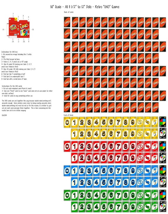 1 6 Retro Uno Doll Sized Playing Cards Instant Digital Etsy