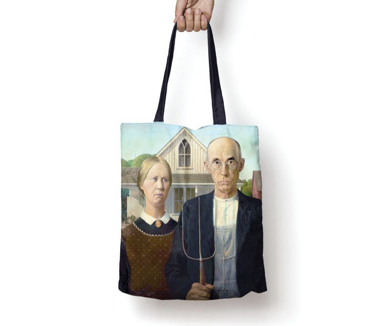 Not A Plastic Tote Bag With Print American Gothic Gift For Her Etsy