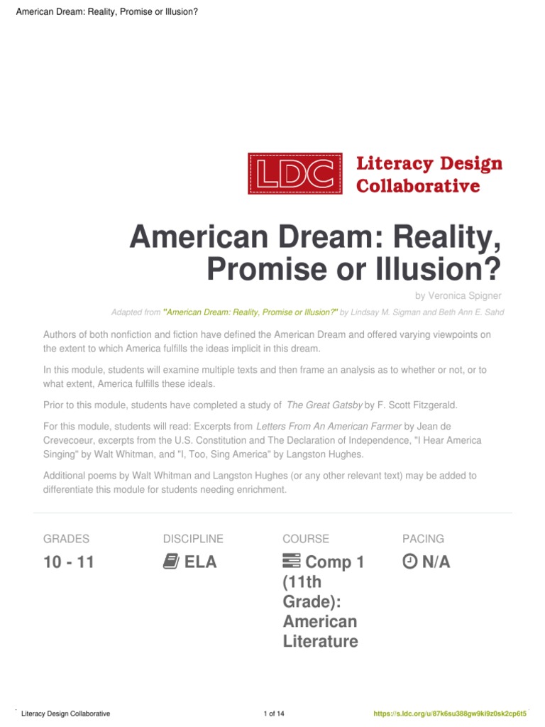 American Dream Reality Promise Or Illusion Reading Comprehension